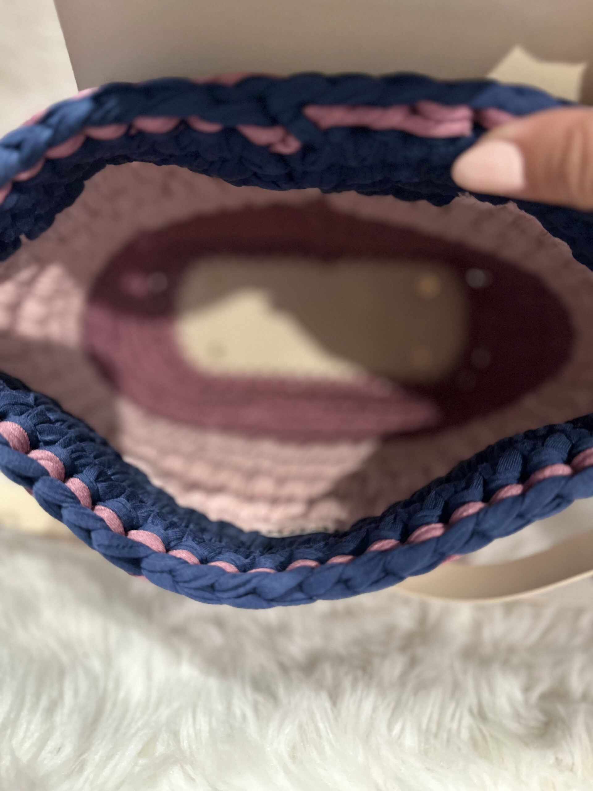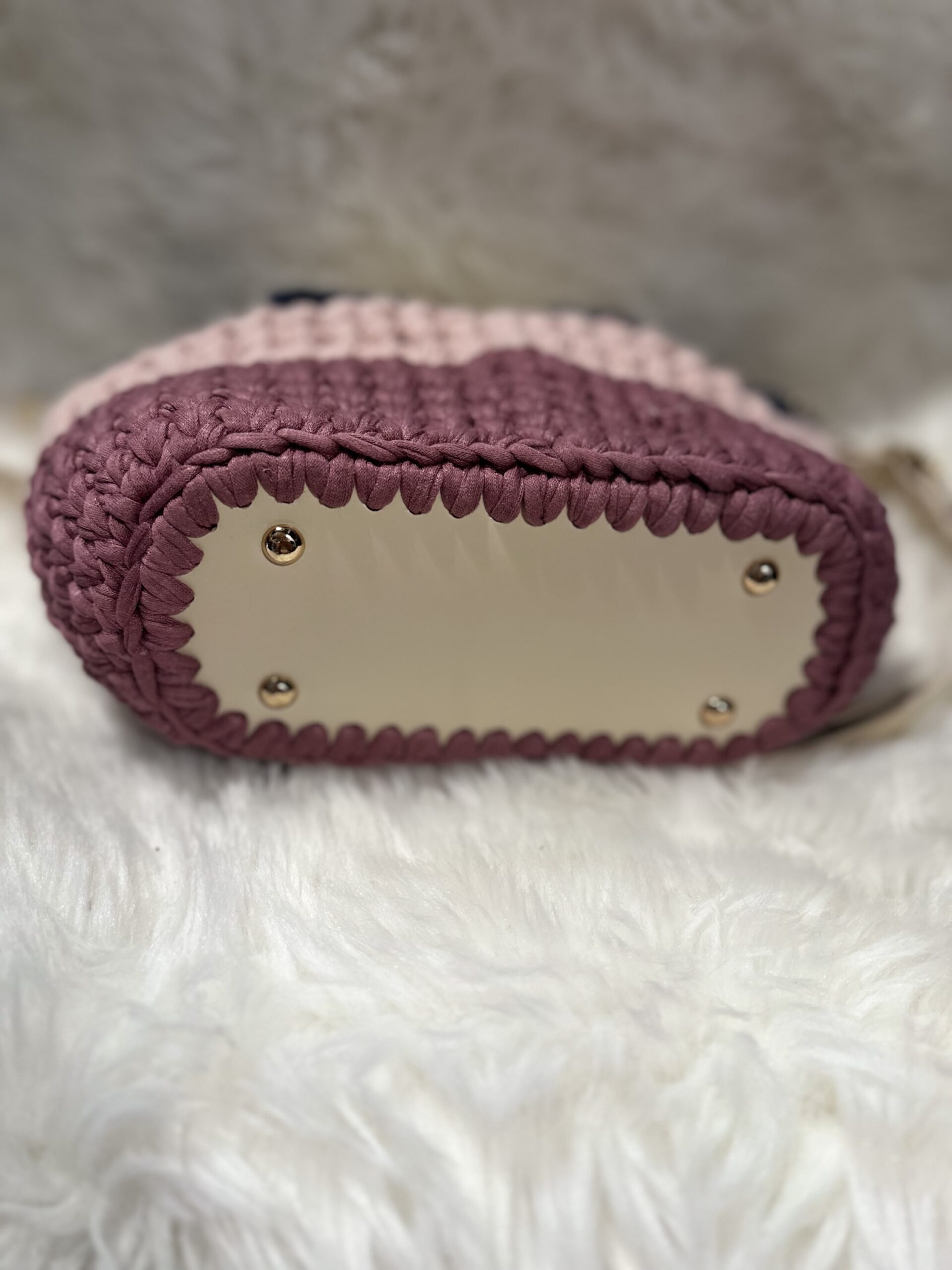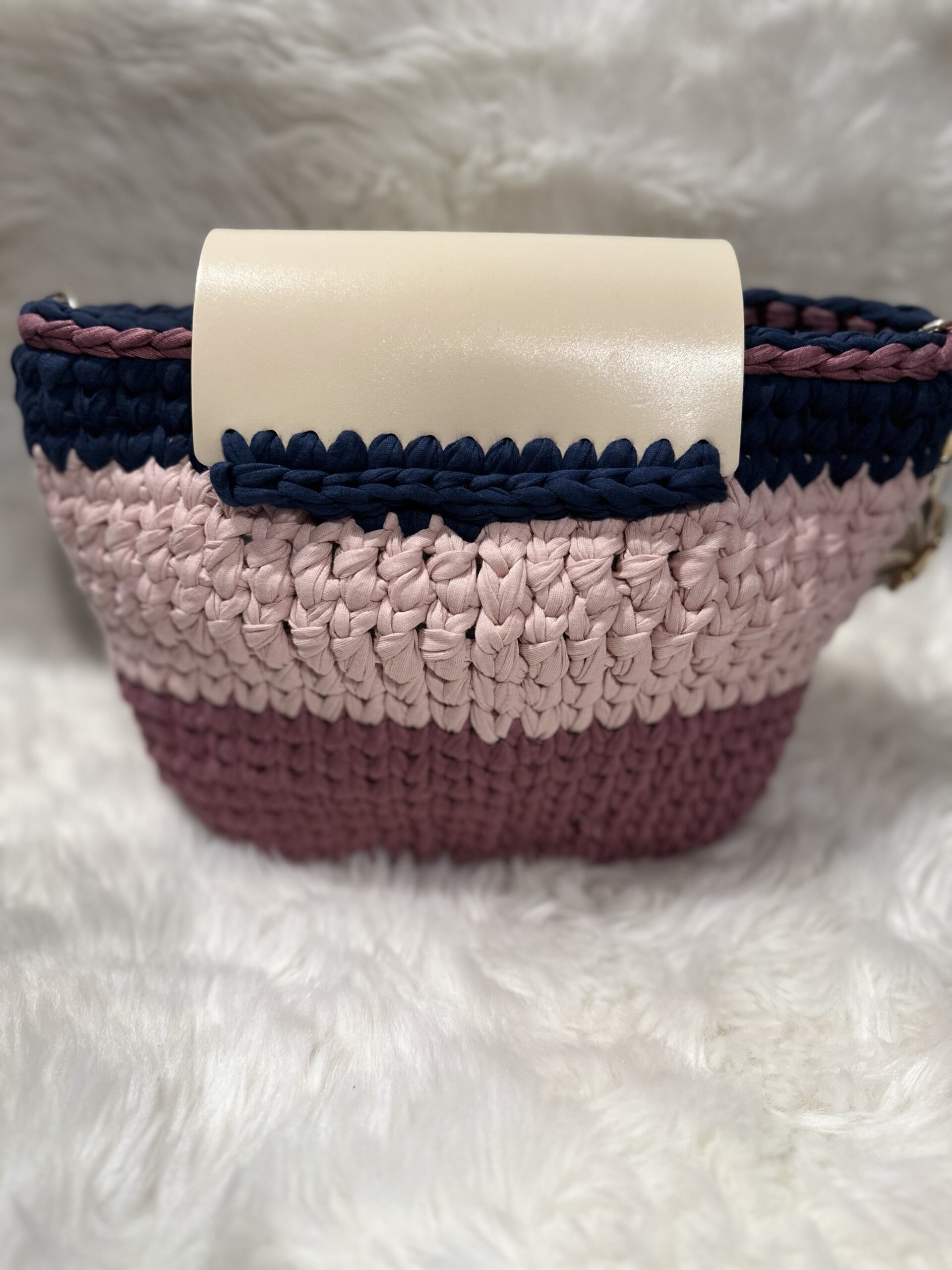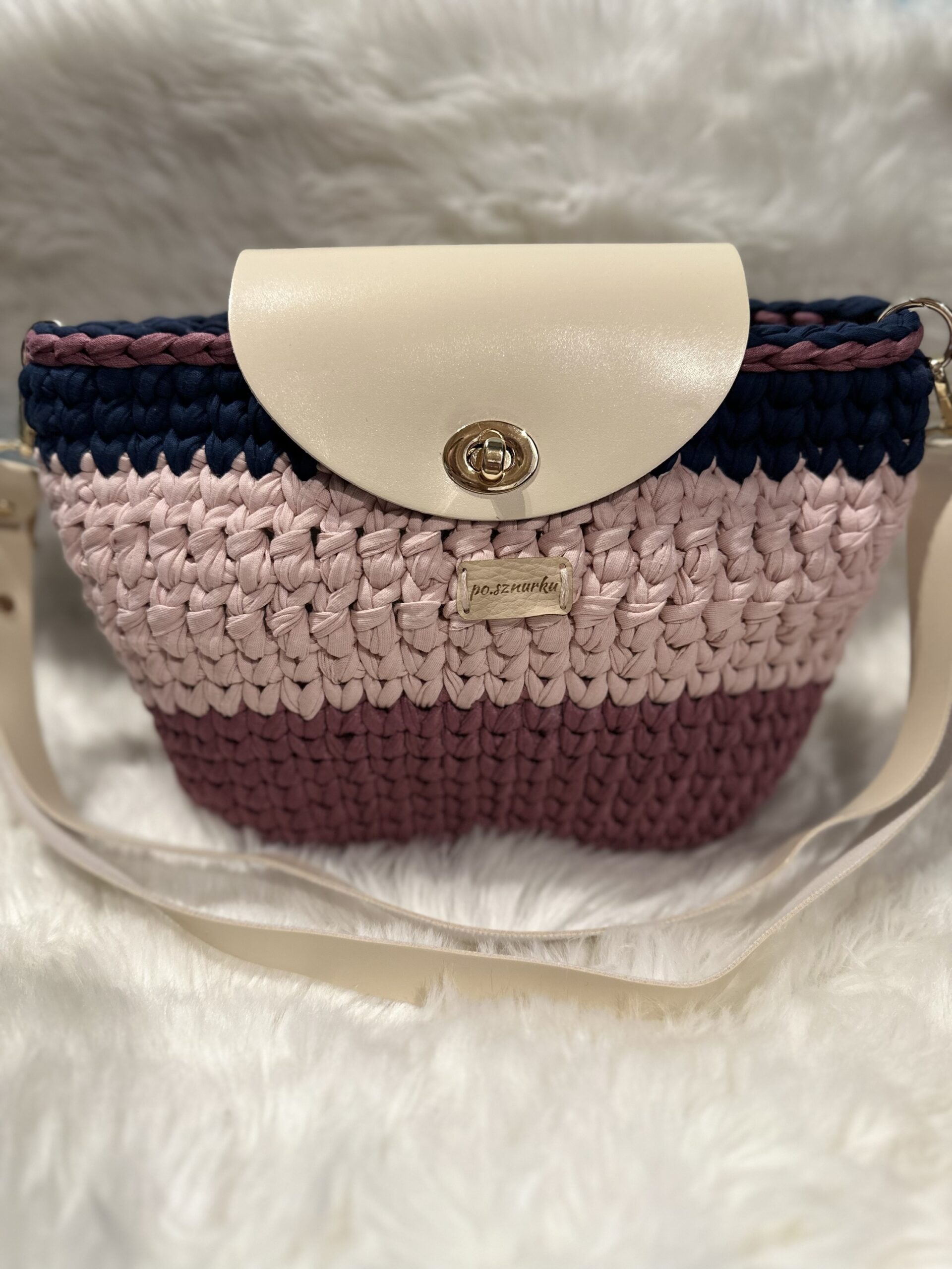 Torebka wykonana z przędzy T-shirt 100% bawełna.