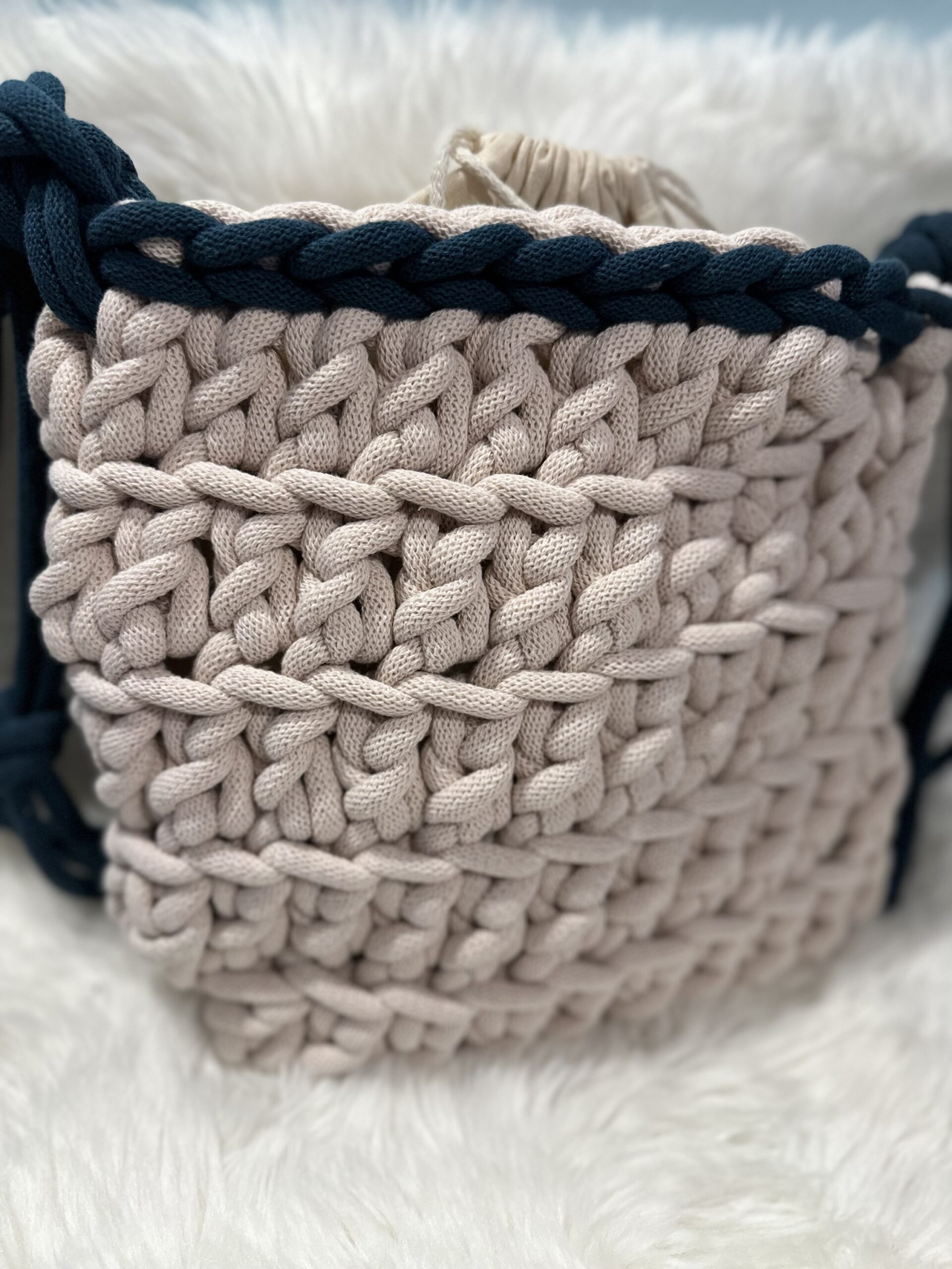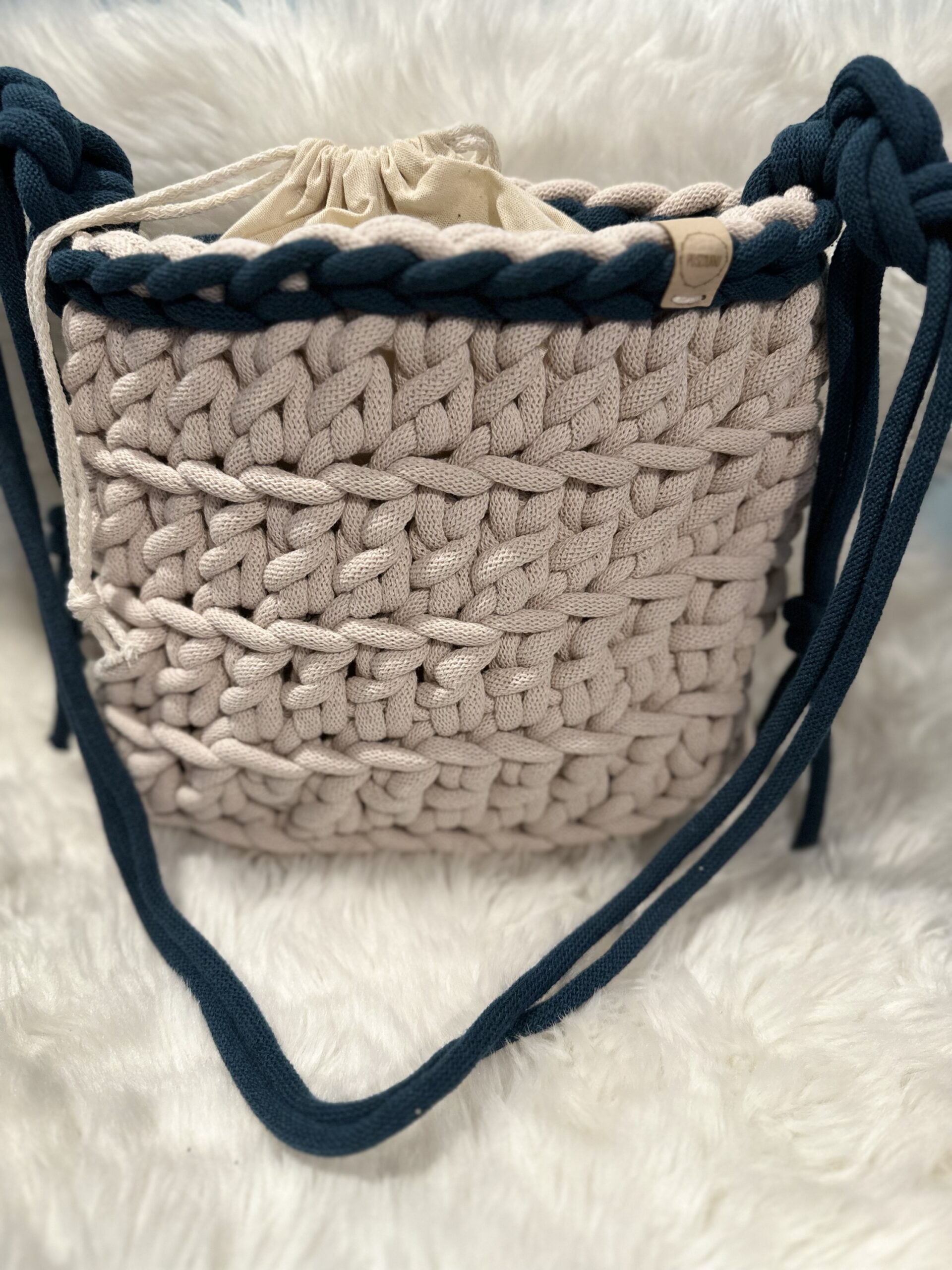 Torebka wykonana ze sznurka 100% bawełna.